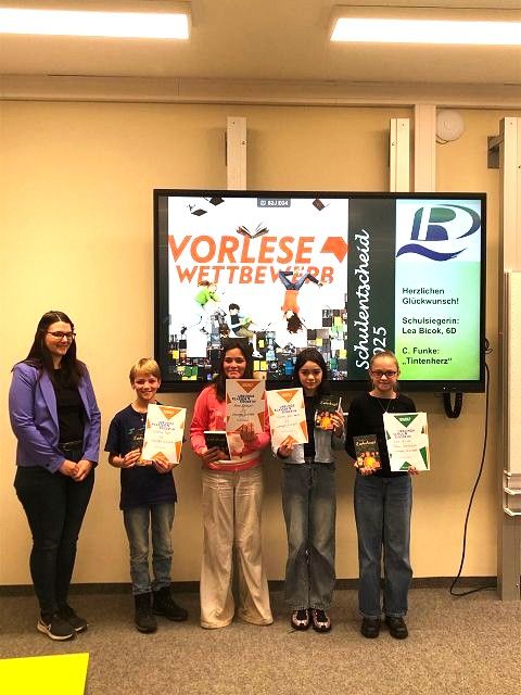 In der ersten Runde wurden vorbereitete Texte vorgelesen, anschließend mussten die vier Konkurrierenden ihre Fähigkeiten bei einem Ausschnitt aus einem ihnen unbekannten Werk unter Beweis stellen. Die Jury entschied, dass Lea Bicok, die das Buch „Tintenherz“ von Cornelia Funke gewählt hatte, am besten vorgetragen hat und deshalb die Schulsiegerin des diesjährigen Vorlesewettbewerbs ist.