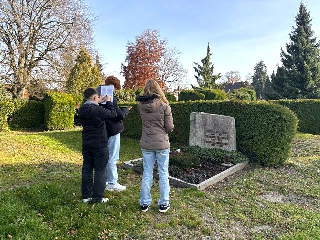 Im Rahmen des katholischen Religionsunterrichts besuchten Schülerinnen und Schüler der Klasse 10A und 10B den alten Friedhof in Lauingen.