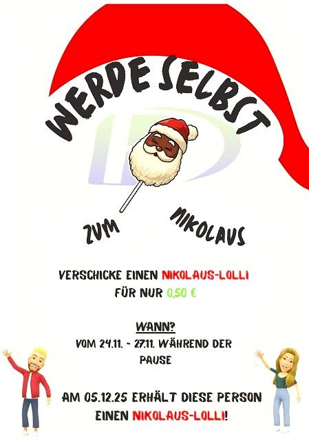 In der Vorweihnachtszeit sorgte die Nikolaus-Aktion der SMV an der Donau-Realschule für viele lächelnde Gesichter. Die Schülerinnen und Schüler hatten die Möglichkeit, ihren Mitschülerinnen und Mitschülern eine kleine Freude zu bereiten, indem sie ihnen einen Nikolaus-Lolli zukommen ließen.